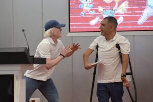 Dentro del programa Trainers Paralímpicos, los dos deportistas interpretaron el cuento “Raqui y la carrera de relevos”, uno de los cuentos de la colección de libros de la Biblioteca Infantil de Fundación ONCE.